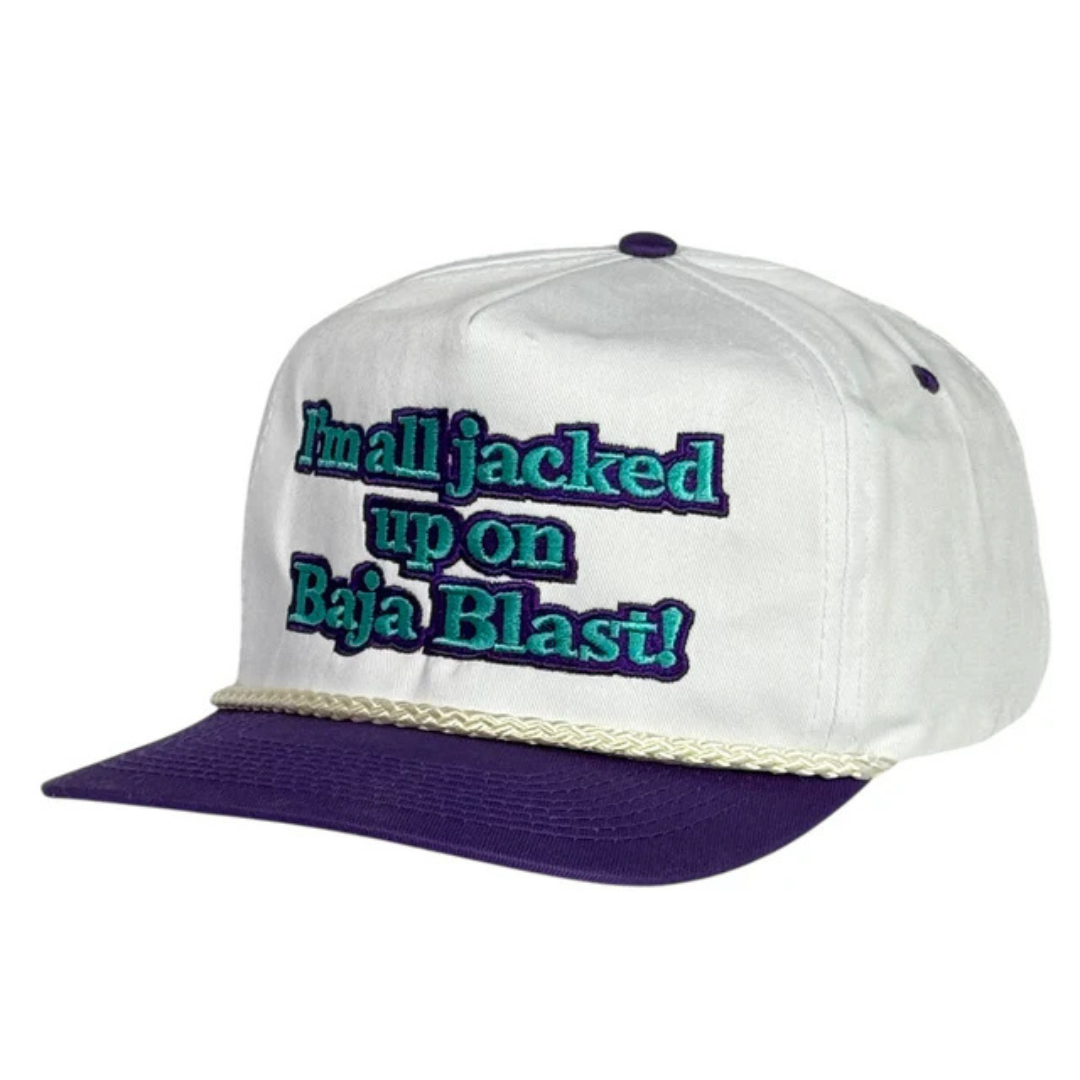 I used to think caffeine was a gentle suggestion, like a polite knock on the door of consciousness. Then I met Baja Blast. Baja Blast doesn’t knock—it kicks the door off the hinges, moonwalks into your soul, and yells, “LET’S GET PRODUCTIVE” at 3 a.m. This hat understands that truth. It’s not a fashion statement; it’s a warning label. When someone wears “I’m all jacked up on Baja Blast!” you know they’ve transcended coffee and entered a lime-tinted realm where blinking is optional and thoughts travel faster than Wi-Fi.